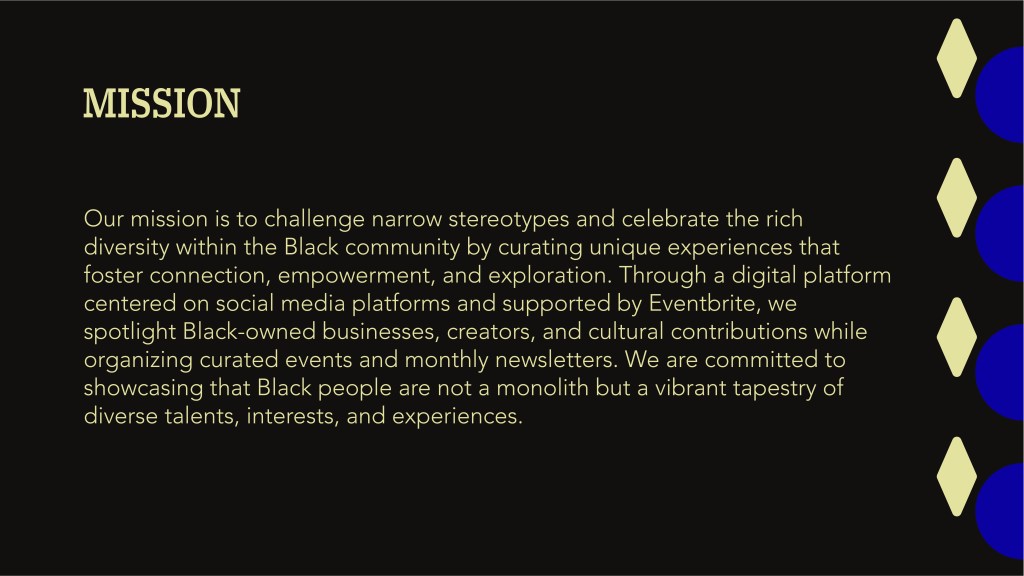 Too often, Black people are viewed through a narrow lens. Through design, curated events, and community engagement, I aim to widen that lens and create space for authenticity, expression, and joy. Beyond the Monolith lives primarily on Instagram, supported by a monthly newsletter. It serves as a hub for highlighting Black owned businesses, creative voices, and events that reflect our collective brilliance.
