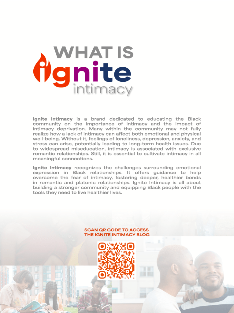 The primary aim of Ignite Intimacy is to inform and empower the Black community in Prairie View, Texas, and surrounding areas by shedding light on the impacts of intimacy deprivation and offering tools to foster emotional stability and stronger interpersonal communication. Through carefully designed resources, such as interactive media, positive visual representation, guided readings, and relationship-building games, this project seeks to address generational setbacks around intimacy and encourage a more open and informed dialogue. Ultimately, Ignite Intimacy serves as both a reflective space and a practical tool that community members can return to, share with others, and use to cultivate more meaningful connections.